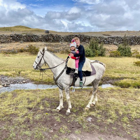 The next day was cloud covered. We tried to wait it out, but the clouds never cleared by lunchtime. So, the kids enjoyed a little time on the horses and we headed to our next destination - the volcano lake of Quilotoa.